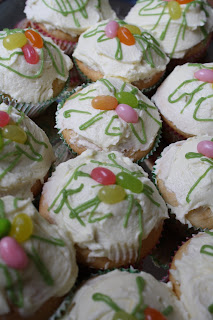 Easter cupcakes with Jelly Belly Jelly beans.....with green icing grass.